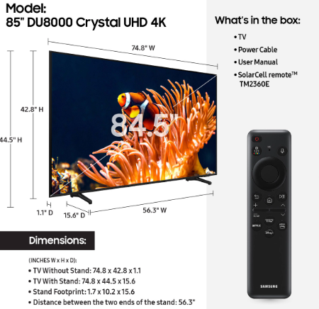 Samsung TV 85” DU8000 (UA85U8000FU)